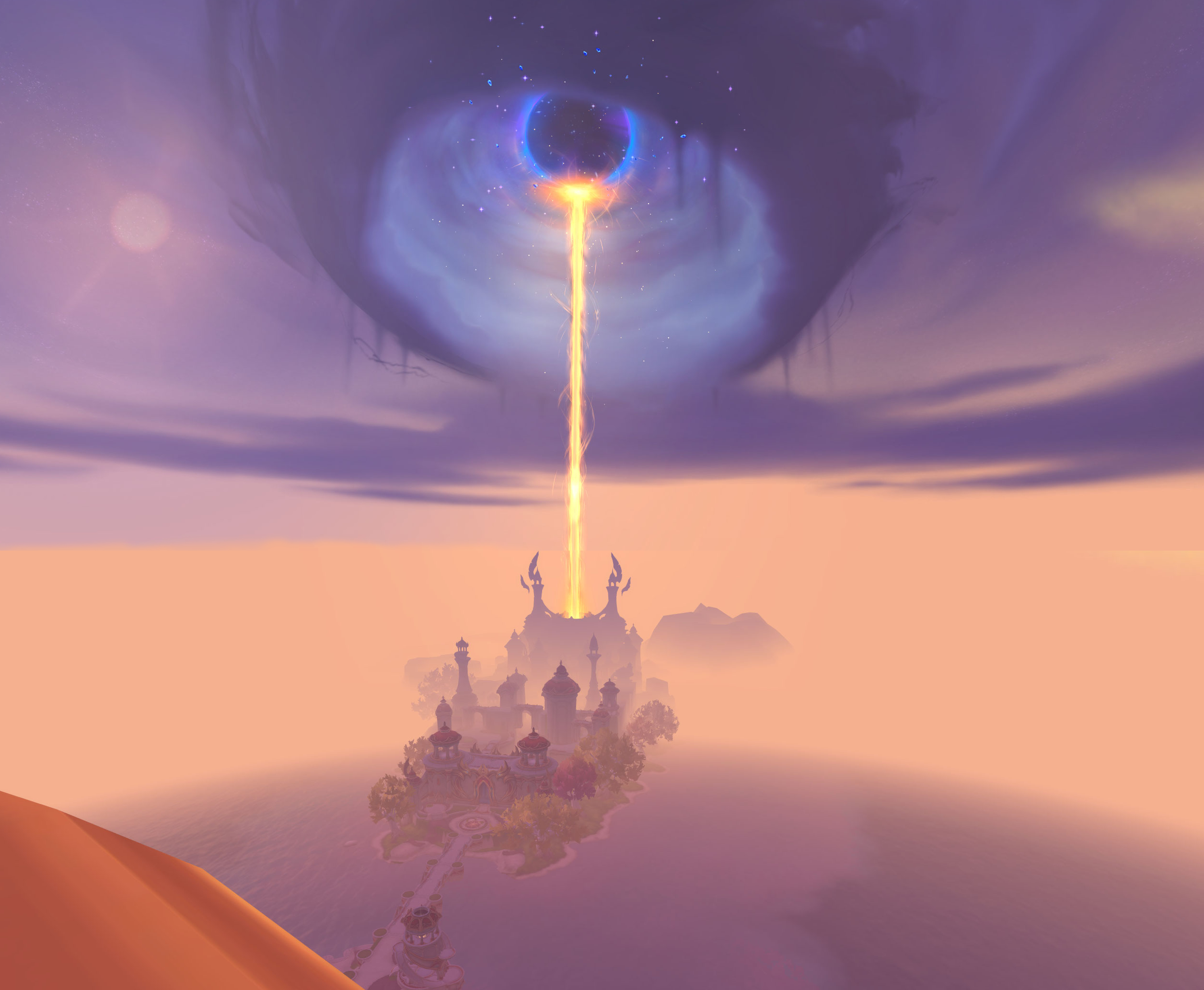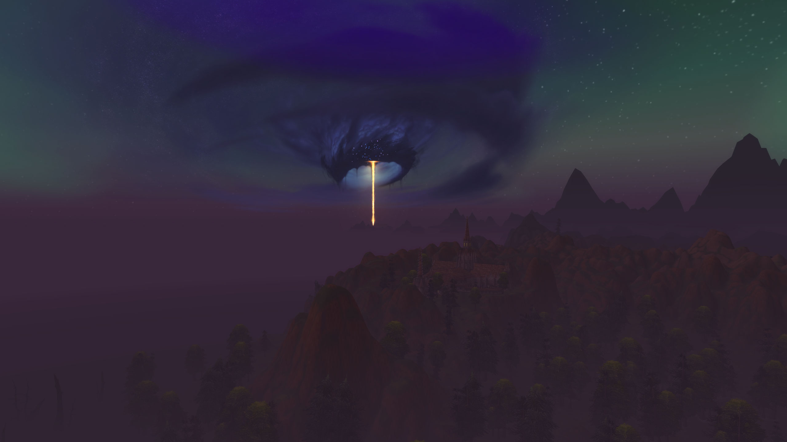 The Sunwell beam, keeping the Voidstorm at bay in the sky, can be seen from Tirisfal Glades, and you can fly above Stratholme to see it peaking above the mountains.